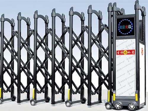 東莞伸縮門的連接管連接結構,可以防止連接管和橫桿磨損,延長構件的使用壽命,使連接管轉動靈活自如,并伸縮門整體運行更加平穩。電動伸縮門的連接管連接......